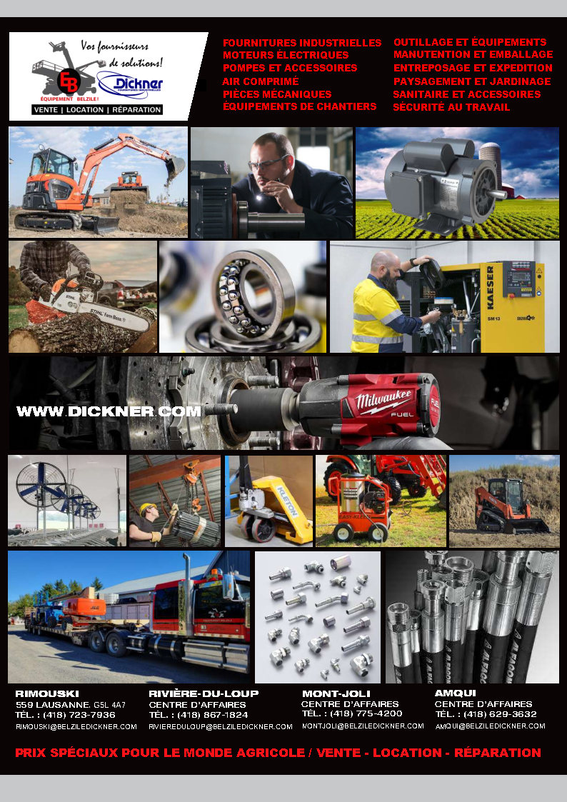 Dickner est votre partenaire fournisseur de solutions pour les opérations de maintenance, réparations et opérations (MRO), de composants et systèmes de transmission de puissance, de composants hydrauliques, de systèmes d'accouplement, de solutions de lubrification, de produits d'étanchéité, de solutions de mouvement linéaire, de produits électriques, d'outillage et de fournitures industrielles. Notre équipe compte des décennies d'expérience à desservir des clients œuvrant dans les domaines suivants: industrie, fabrication, agriculture, foresterie, énergie, transformation, transport, secteur maritime, mines, construction. Elle dispose des ressources nécessaires pour recommander des solutions pour les applications les plus exigeantes et déterminer les composants les plus adaptés à vos besoins tout en réduisant les délais de livraison. Dickner est le fournisseur par excellence pour un grand nombre de clients qui apprécient nos produits de haute qualité, la polyvalence de nos services, l'expertise de nos conseillers, notre capacité de fournir des solutions ainsi que notre engagement incessant pour les satisfaire.